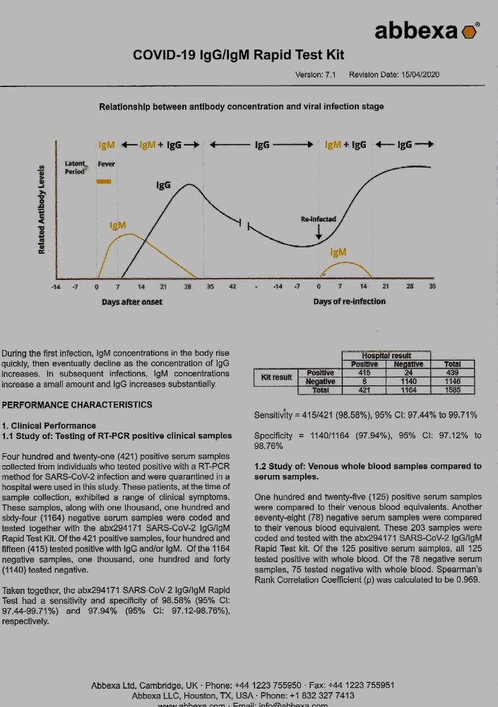 Er staat niet te lezen welke specifieke IgM/IgG waarden gemeten worden. Het kan evengoed op griep als op mazelen zijn, dus nutteloos. Eén Abbexa testsetje kost ongeveer 17 Euro , en dat test specifiek op corona antistoffen, geen andere.tokkio schreef: ↑24 mei 2020, 16:05En in het NL .......kost het... 75€![]()