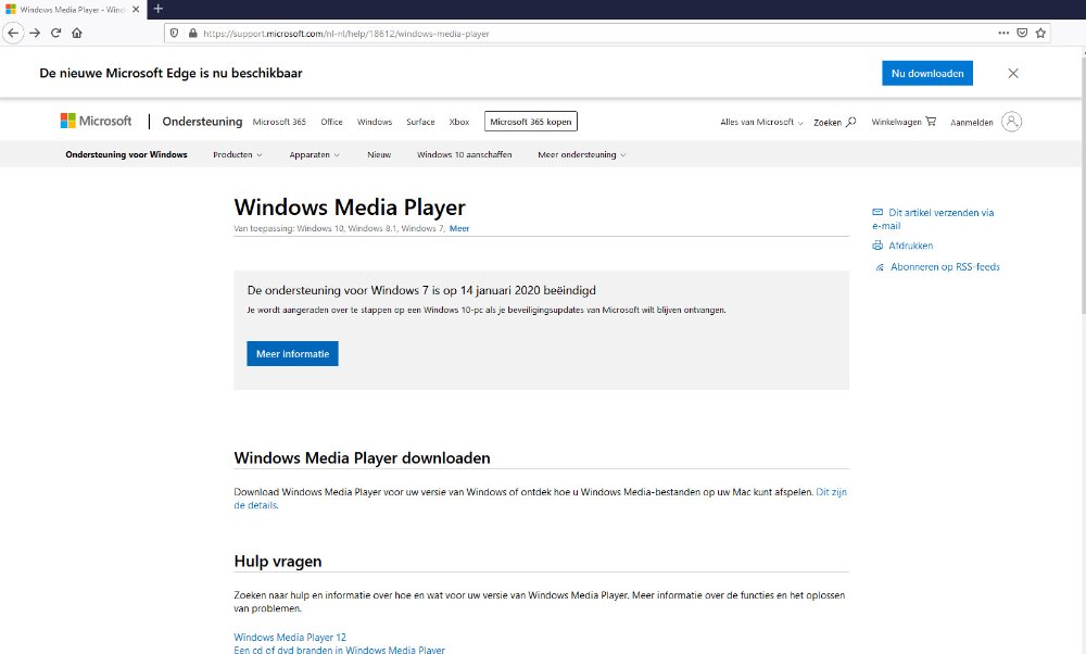 Hallo Sony, lukt niet hoor, zie de 2 bijlagen, er wordt verwezen dat de ondersteuning van windows 7 verlopen is, mvg, Alain