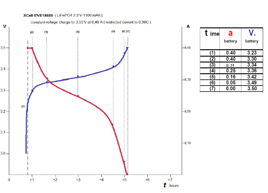 Die laadcurve is specifiek voor Li-ion , en die ziet er totaal anders uit bij laden met een constante spanning i.p.v. een constante laadstroom. Laden met een constante spanning is wat men doorgaans doet , maar dat is een stuk trager en zorgt voor een overspanning op de cel ( af te raden ).