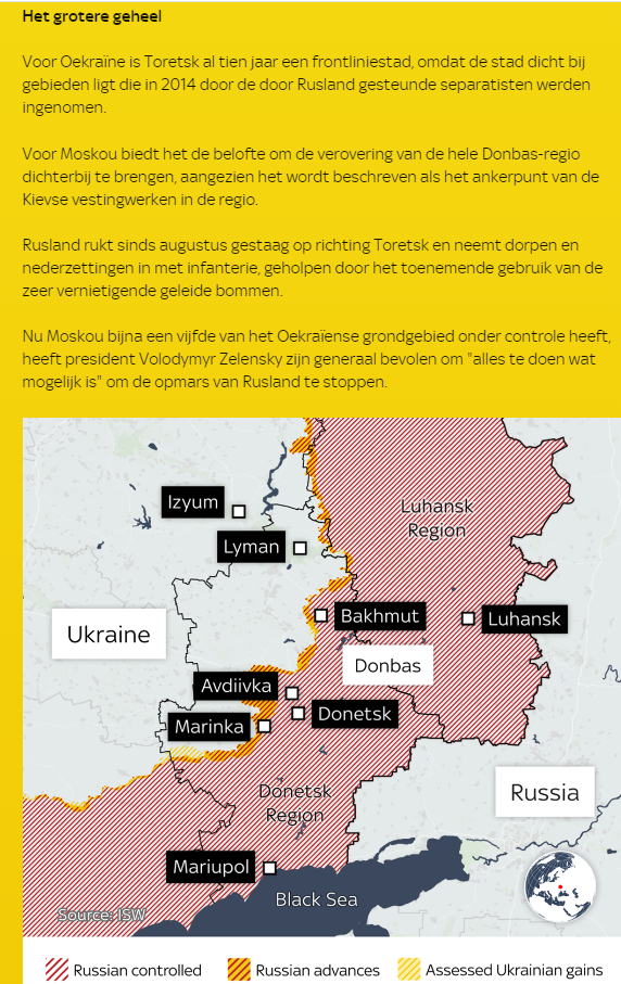 Maksymiljaniwka gaat zowat binnen 12 uur ook al in Russische handen vallen. Op naar Kurakhove ? In die regio zijn er bljkbaar veel "ontginningsputten" van vanalles en nog wat ( en ook een pak spoorwegverbindingen voor het transport van wat men er uit de grond haalt ). Duidelijk dat Zelensky die bodemschatten niet wil loslaten.