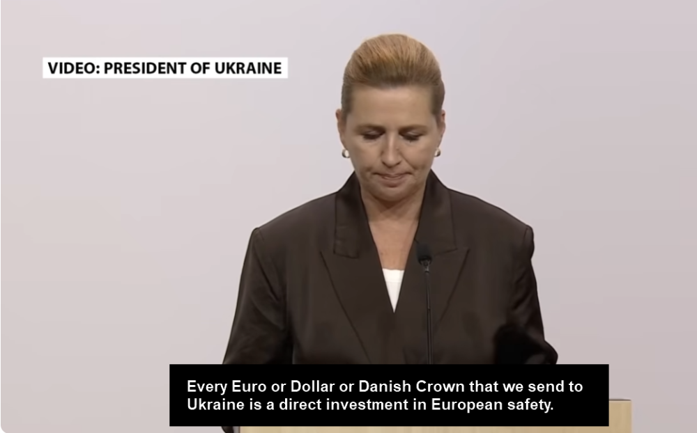 Als mevrouw het zo belangrijk vindt voor de Europese veiligheid dan hup: stuur een aantal Deense jongemannen naar het front. Want het is niet een probleem wat alleen Oekraine aangaat toch...?