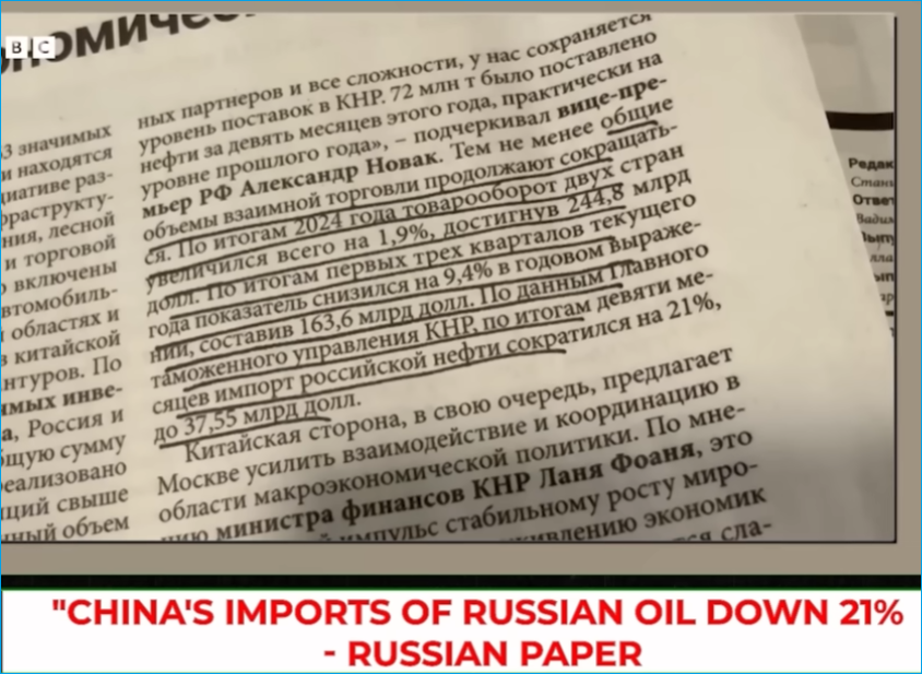 De eerste 9 maanden van '25 werd er 21% minder olie naar China verscheept volgens de RU gazet ...