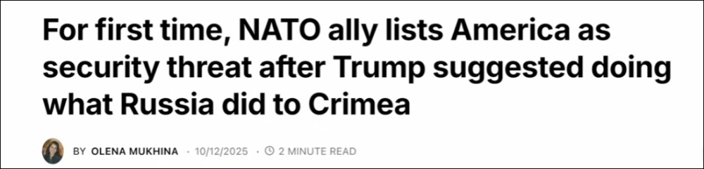 Dit komt uit Denemarken: de VS wordt aanzien als een bedreiging van de nationale veiligheid en dit n.a.v. de dreiging om Groenland binnen te vallen zoals Poetin heeft gedaan met de Krim.
