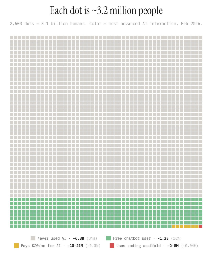 Slechts 0,04% van de wereldbevolking gebruikt actief een AI-programmeerplatform.