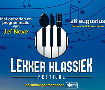 Studio 100 pakt uit met een gloednieuw festival waarop klassieke muziek en lekker eten hand in hand gaan. Op 26 augustus geniet je in De Schorre in Boom van het werk van topmuzikanten, verzameld door niemand minder dan Jef Neve, én proef je heerlijke gerechten van de topchefs van njam!. SeniorenNetters worden tijdens het festival getrakteerd op een gratis glaasje cava!