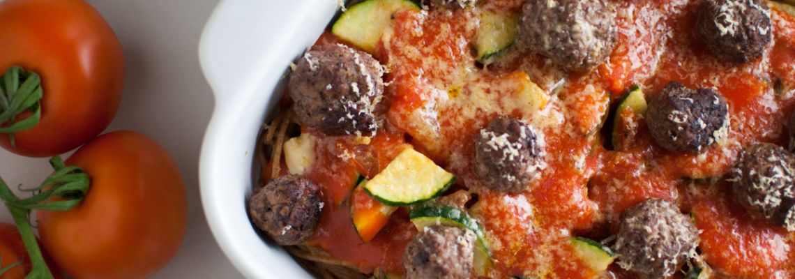 Leg hier de gehaktballen bovenop en werk af met de kaas.