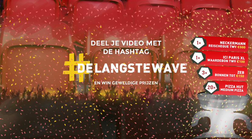 Jong en oud, man of vrouw, in groep of alleen, iedereen doet mee aan #delangstewave. Hoe uitbundiger het filmpje, hoe beter. Sterker nog, voor de mooiste, gekste, origineelste creaties staan er geweldige prijzen klaar. Zo geven we onder andere een flinke reischeque van Neckermann weg en zijn er bonnen voor onder meer Pizza Hut, HelloFresh of ICI PARIS XL. Om het feestje helemaal compleet te maken, sturen we tijdens de wedstrijden van België teams op pad om waves op film vast te leggen.