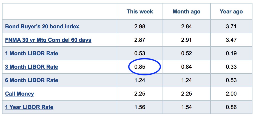 Veel van dit soort schulden zijn gekoppeld aan bijvoorbeeld de London Interbank Offered Rate (LIBOR). Dat is de gemiddelde referentierentevoet waartegen een select groepje banken geld aan elkaar uitlenen. Veel van de leningen die door BDC’s uitstaan, gaan pas wat merken van het floating rate effect als de LIBOR boven de 1% stijgt. Maar, die 1% ligt best dichtbij de huidige cijfers.