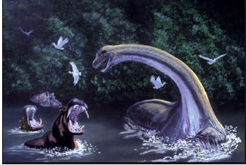 Eén van die wezens is de Mokele Mbembe. Dit dier zou zich schuilhouden in de diepste moerassen van Midden-Afrika en lijkt op een sauropode, een dinosaurus met een lange nek. De Mokele Mbembe zou zo’n 8 tot 12 meter groot zijn en leven van planten en grassen die groeien nabij het moeras. Het reusachtige dier zou zich ook dikwijls te water begeven en dan in de clinch gaan met de nijlpaarden die in het water zitten. Hoewel de Mokele Mbembe vele malen groter zou zijn dan de nijlpaarden, zouden die er zeker en vast geen schrik van hebben. Lokale jagers zouden de twee diersoorten meermaals hebben zien dreigen naar mekaar, maar echte aanvallen kwamen er volgens hen nog niet. De Mokele Mbembe zou een vreedzaam dier zijn dat enkel aanvalt om zijn territorium te beschermen. Menselijke slachtoffers zouden er nog niet gevallen zijn. Langs de andere kant zou er ooit een stam pygmeeën zijn geweest die na een lang gevecht een Mokele Mbembe hadden geveld en opgegeten. Of dat waar is, weten we niet. Bewijzen zoals botten, een schedel of een stukje huid werden er nog niet gevonden.