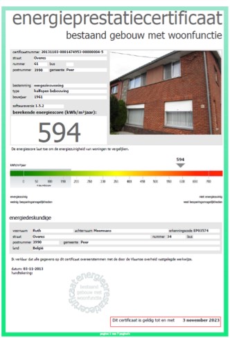 Als je een woning of een appartement verhuurt of verkoopt, moet je een energieprestatiecertificaat, of EPC, laten opmaken. Op dat certificaat staat een getal, bv. 450 kWh/m², dat aangeeft wat het energieverbruik van de woning is. De bedoeling van het EPC is potentiële kopers of huurders te informeren over de energiezuinigheid van de woning, om hen ook de mogelijkheid te geven projecten te vergelijken op basis van het energieverbruik.