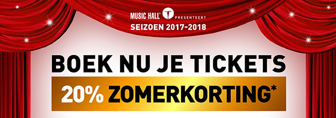 Music Hall bedankt z'n trouwe publiek voor het schitterende afgelopen seizoen en beloont de musical-, dans- en operaliefhebbers tot en met 31 augustus 2017 met een stevige zomerkorting van 20% op tickets voor het komende seizoen.