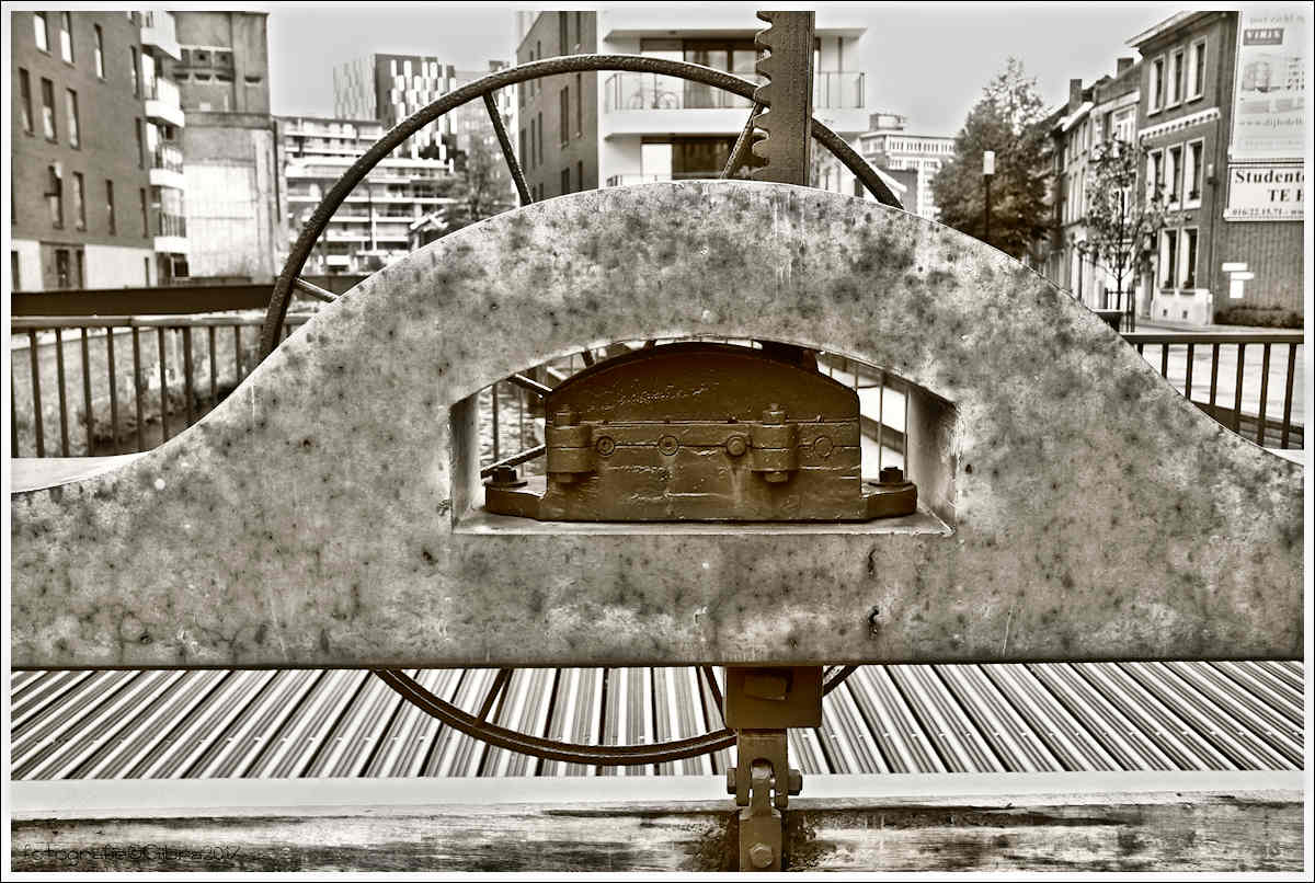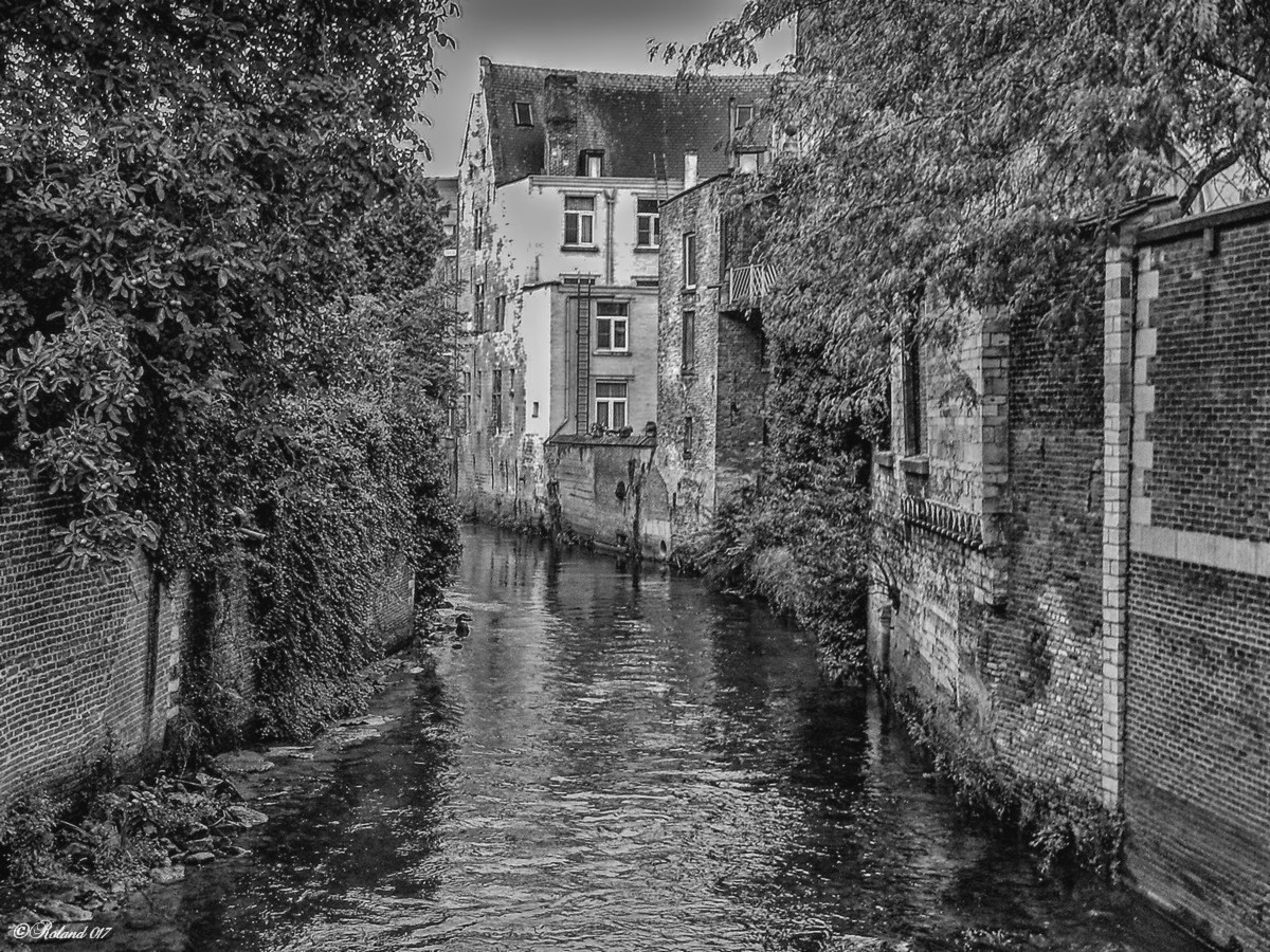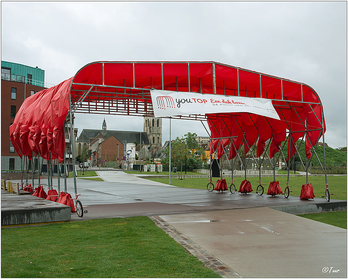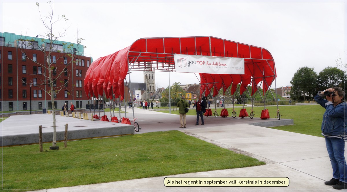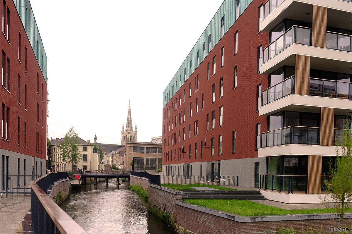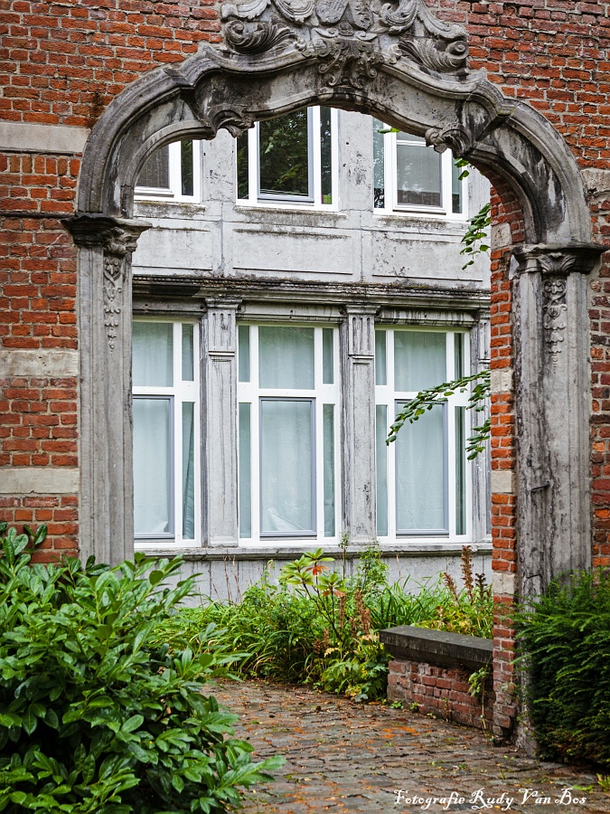 Het was dus onder druilerige regenwolken dat de groep samenkwam aan het station van Leuven. Na de traditionele groepsfoto getrokken te hebben aan het vredesmonument op het Martelarenplein, loodste de ervaren Leuvenkenner Marsje ons via de Diestsevest naar de Tweewaters. Deze plaats is zo genoemd omdat twee waterlopen (de Dijle en de Vunt) er letterlijk naast elkaar lopen, links en rechts van een wandelpad. Een prachtig stukje natuur midden in de stad en aan de rand van een oude industriële zone.
