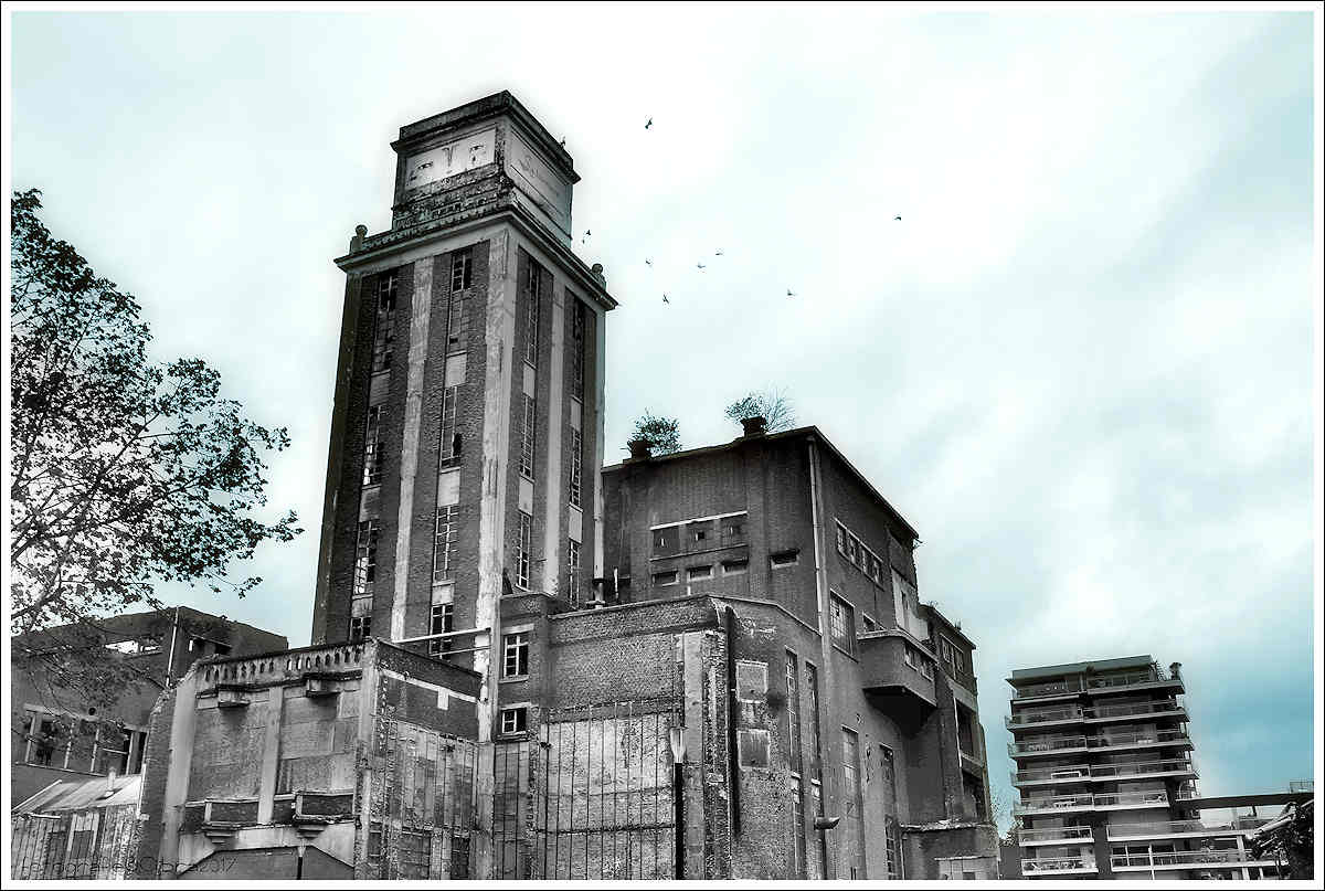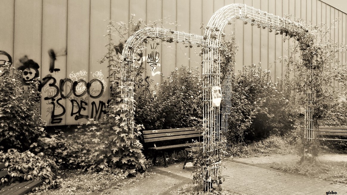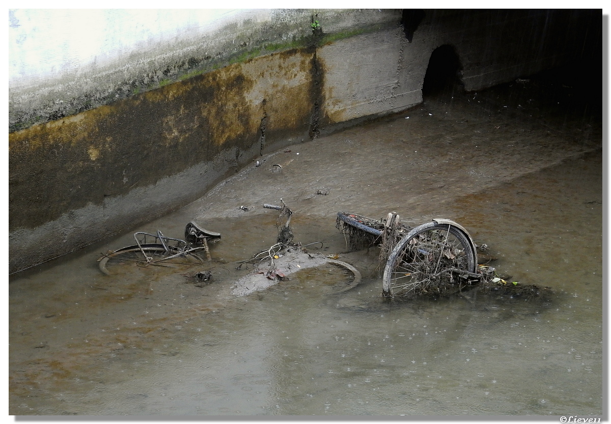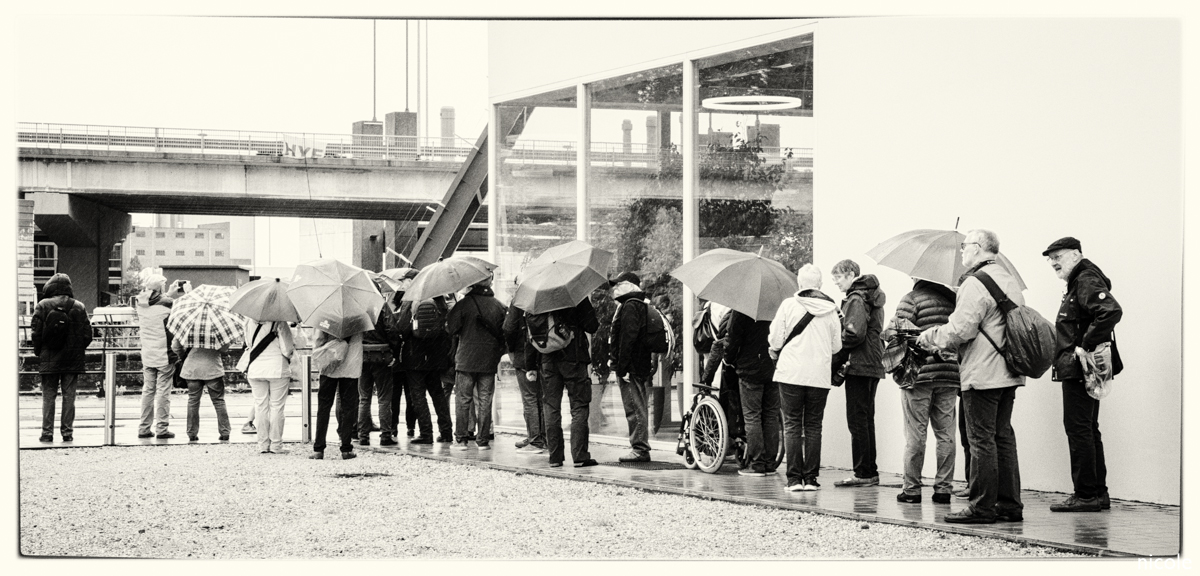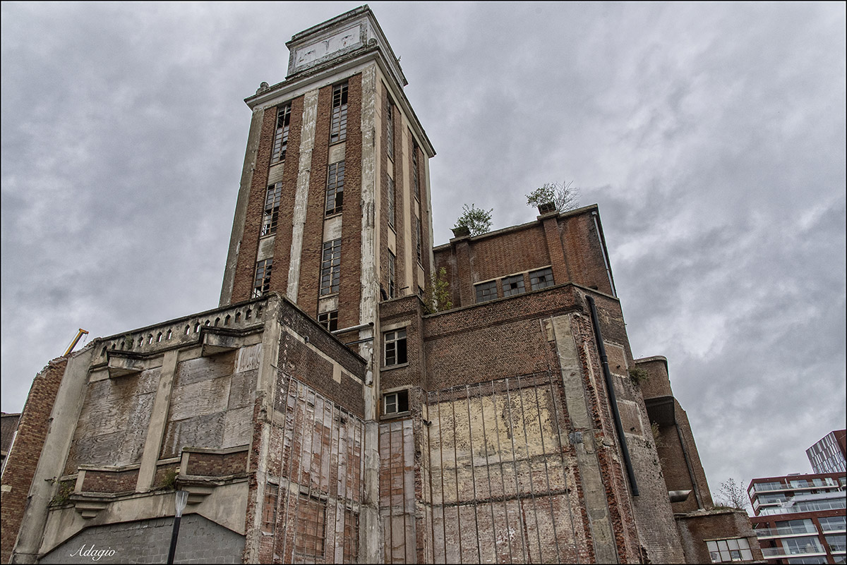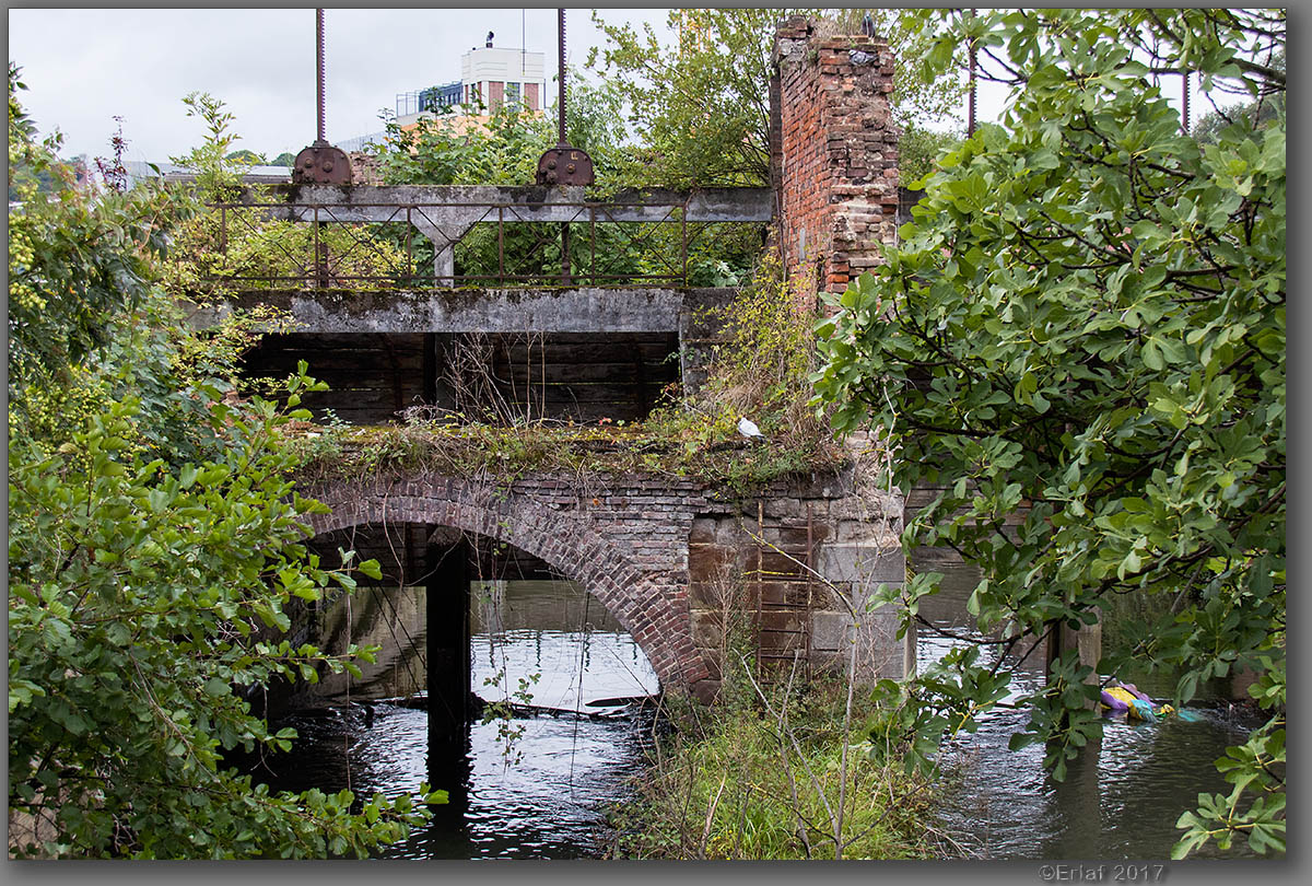 Het was dus onder druilerige regenwolken dat de groep samenkwam aan het station van Leuven. Na de traditionele groepsfoto getrokken te hebben aan het vredesmonument op het Martelarenplein, loodste de ervaren Leuvenkenner Marsje ons via de Diestsevest naar de Tweewaters. Deze plaats is zo genoemd omdat twee waterlopen (de Dijle en de Vunt) er letterlijk naast elkaar lopen, links en rechts van een wandelpad. Een prachtig stukje natuur midden in de stad en aan de rand van een oude industriële zone.