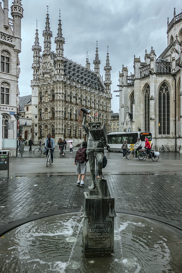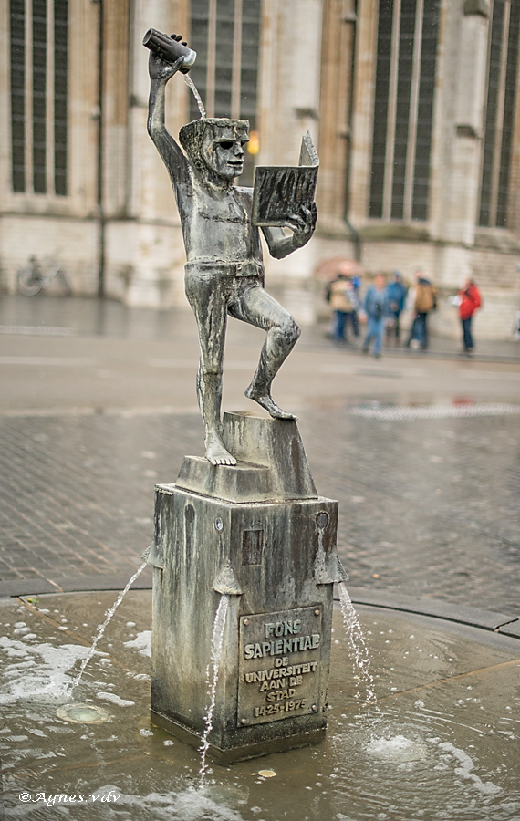 We wandelden verder naar de Grote Markt, maar niet zonder eerst een bezoekje te brengen aan het bekende monument Fonske, een ode aan de studenten die zo talrijk aanwezig zijn in deze universiteitsstad.