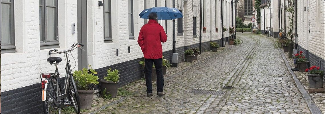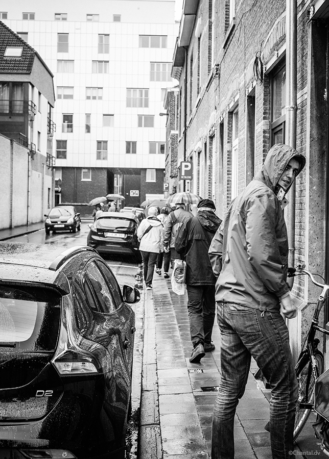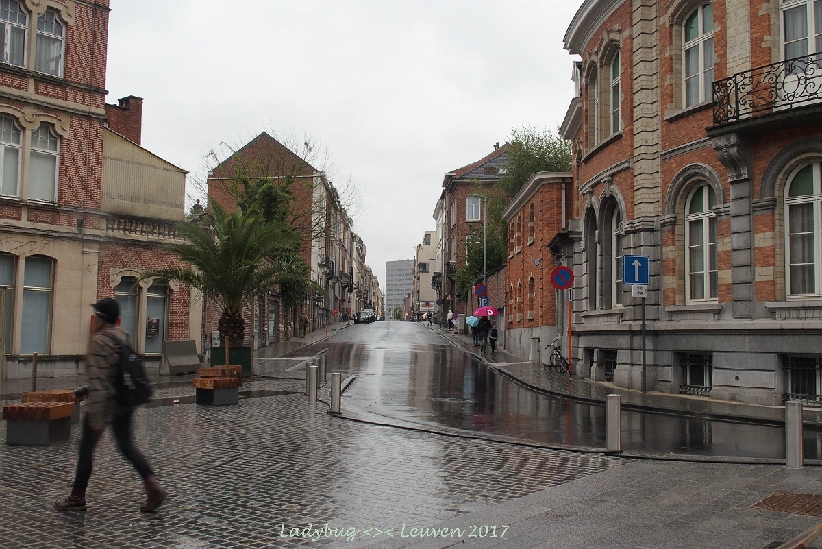 Na de maaltijd trok de groep naar het centrum. Omdat de regen heviger werd, besloten we om het parcours wat in te korten. We wandelden langs de stadswallen naar de Brusselsestraat, van waaruit we terug aan de oevers van de Dijle kwamen.