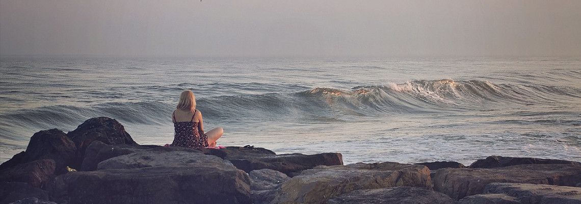 Zittend op een rotsblok