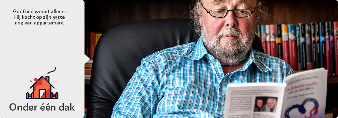 ‘Nee, ik voel me helemáál niet eenzaam. Een mens, zeker een man van mijn leeftijd, moét al eens alleen kunnen zijn, vind ik. Eenzaamheid kan ook een loutering zijn. Maar ik leef niet alleen op de wereld. Ik heb veel vrienden en vriendinnen, een behoorlijk sociaal leven, dus ik zit niet gevangen tussen de vier muren hier. Integendeel. En hierbinnen geniet ik in mijn eentje vooral van mijn boeken. Echte boeken, hé, gedrukt, niet op een e-reader. Ik heb altijd papiertjes en een balpen in de buurt, om interessante passages te noteren.’