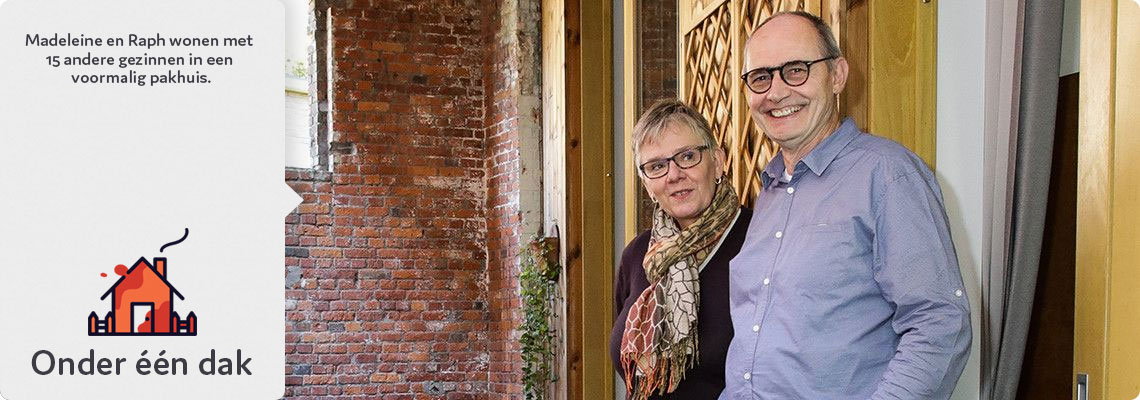 ‘Hier zijn veel jonge mensen. Mijn man en ik zijn de oudsten. Maar ik voel hier met veel bewoners een vorm van zielsverwantschap. Wij vinden dat ook belangrijk. Toen we nog in ons huis woonden, waren we daar betrokken bij het buurtcomité. Hier wonen is voor ons echt meer dan gewoon een appartement betrekken. Thuis komen en de deur achter ons dichttrekken, zo zijn wij niet.’