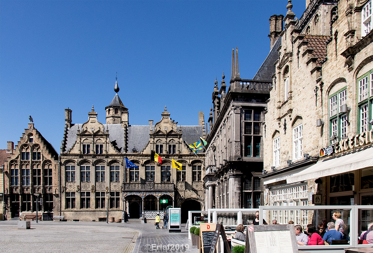 De vele historische gebouwen op de Grote Markt gaven ons een prachtig beeld van de rijke geschiedenis van Veurne. Het uitgelezen moment om de fototoestellen boven te halen. We spraken af om een half uurtje rustig alles te verkennen en op beeld vast te leggen, om dan af te spreken in het restaurant voor de lunch.
