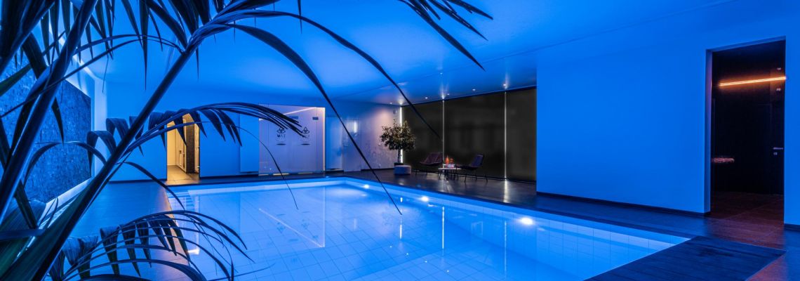 Bij Eau Bleue kan je In de privélounge ruimte genieten van dé ultieme relaxbelevenis. Je vindt er onder meer een verwarmd binnenzwembad, luxueuze sfeerverlichting, hamam met geurtherapie, bio Epsom scrubzout en een panoramisch zonneterras.