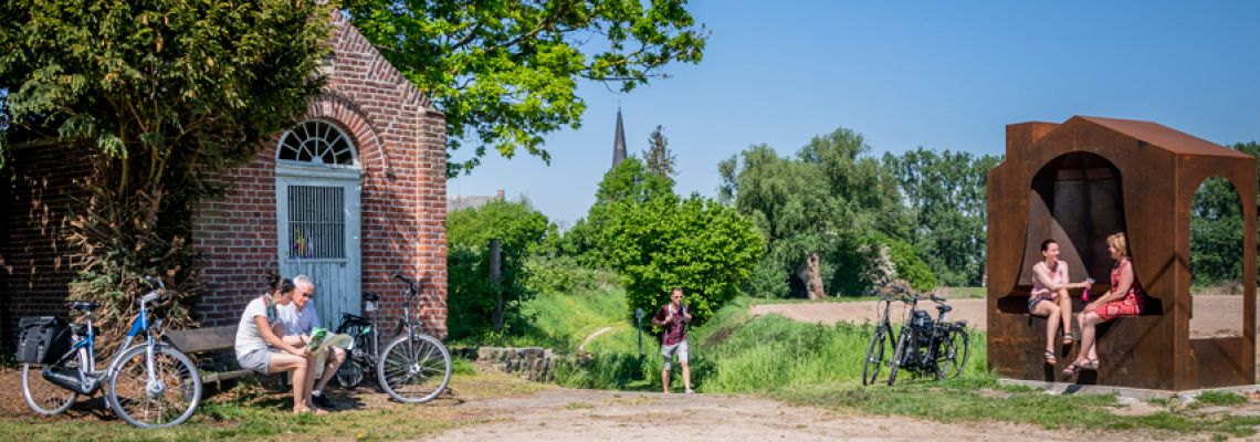 Fietsen langs fruitbeeldige kunstwerken