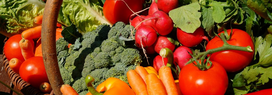 Groenten: aubergines, erwten, paprika, rode biet, bonen, venkel, courgette, tomaat, aardappel, broccoli, rode kool