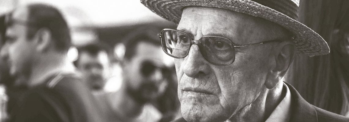 De ranke, grijze man vond nog een plaatsje in de schaduw, op het met zon overgoten terras. Hoewel hij nog goed ter been was, geraakte hij maar moeizaam gezeten. Het was laveren tussen het dicht bij mekaar geplaatste meubilair, kwestie natuurlijk van zoveel mogelijk mensen de kans te bieden te genieten van die mooie zomerdag. En ook om daaruit het grootste rendement te halen.