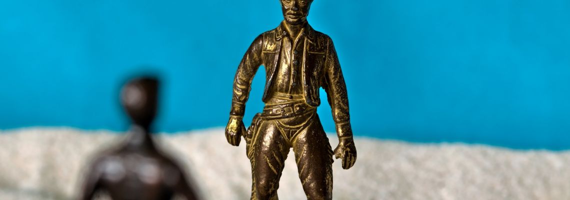 Twee cowboys zitten aan de toog van een saloon en hebben een probleem. Geen groots wereldprobleem, maar een probleem met elkaar. Men weet dat problemen met elkaar, vaak kwezelachtige probleempjes zijn omdat men deze makkelijker uit de weg ruimt door simpelweg met elkaar te praten. Cowboys geloven daar niet in. Hier heeft het pistool het voor het zeggen. De heren rukken zich recht, de kruk valt met veel lawaai achterom, waarna de bozeriken bijna neus aan neus staan. Intimiderend dicht genoeg, zodat ze indruk op elkaar maken, waarna ze niet veel later, zonder woorden naar buiten trekken, omdat een kogel door het hoofd jagen in een saloon niet netjes is.