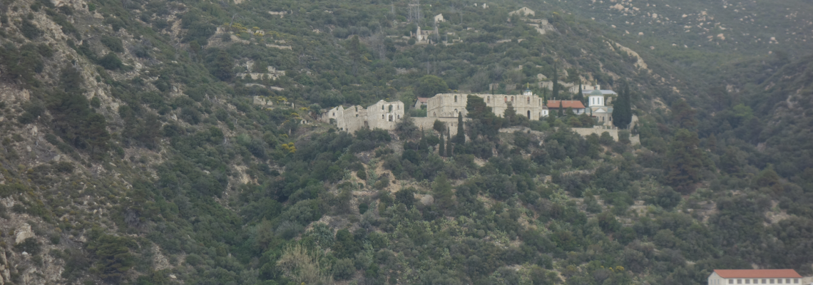 Het is een apart land dat sinds 1054 een autonoom statuut heeft en waar vrouwen en kinderen niet zijn toegelaten. Ons plan, om ons als man te verkleden, zal niet lukken want je hebt een visum nodig om binnen te geraken. Slechts één vrouw mag er afgebeeld en aanbeden worden dat is Maria, de moeder van Jezus. Katholieke mannen mogen er zelfs niet meer dan twee dagen verblijven. Er met de boot rondvaren en de Byzantijnse orthodoxe kloosters bewonderen, die dicht bij de oevers staan, lukt wel.