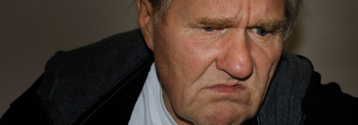 We zijn zo ontzettend bang voor gezichtsverlies van alle vormen, omdat het ons heel erg onveilig en kwetsbaar maakt. We beseffen dat niet, maar diep in ons onderbewustzijn zakken we dan weg tot een verbannen dier in de wildernis, alleen en weerloos tegen de predatoren. En dan trekken we een gezicht zoals die oude kerel daarboven op de foto :-(
