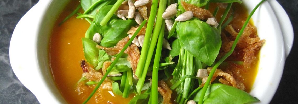 - Gebruik een staafmixer om de soep glad te pureren. Breng op smaak met zout en peper.