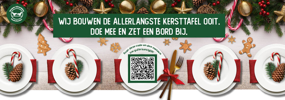 PS Met uw warme bijdrage van 15 euro of meer zet u één of meerdere borden bij op de langste kersttafel van het land. Volg elke dag tot Kerstmis hoeveel borden erbij komen op